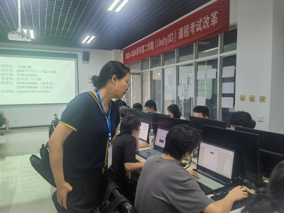 2024年7月7日上午,信息工程学院动漫制作技术专业2022级4个班学生在醒钟楼NOD629、NOD637实训室圆满完成了《Unity 3D》课程考试改革的期末总结性考核。