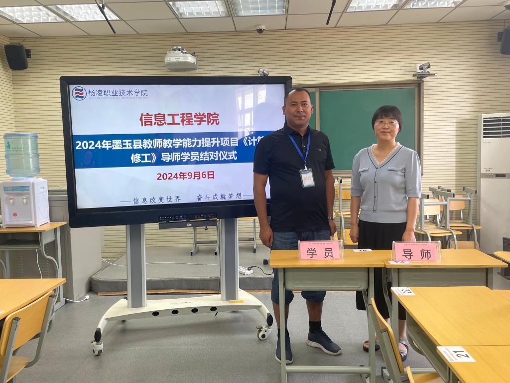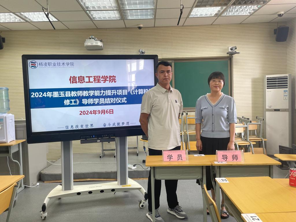 9月6日上午,信息工程学院在醒钟楼D座628举行2024年墨玉县教师能力提升计算机维修项目导师学员结对仪式,学院院长陈高锋、副院长熊刚、网络教研室主任冯春卫、动漫教研室主任黄婉林、教师代表以及墨玉县16位学员等参加,仪式由陈高锋主持。