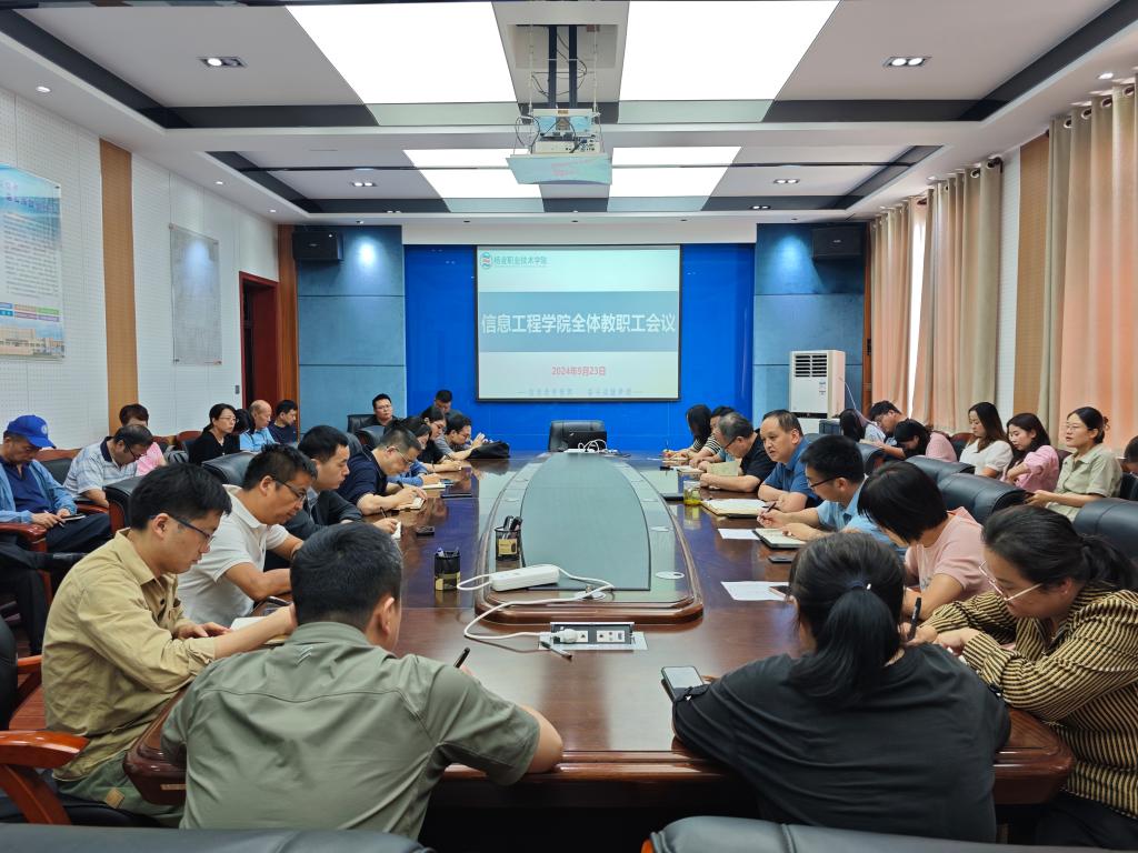 9月23日下午,信息工程学院在秦风楼四楼会议室召开全体教职工会议,会议由院长陈高锋主持,全体教职工参会。