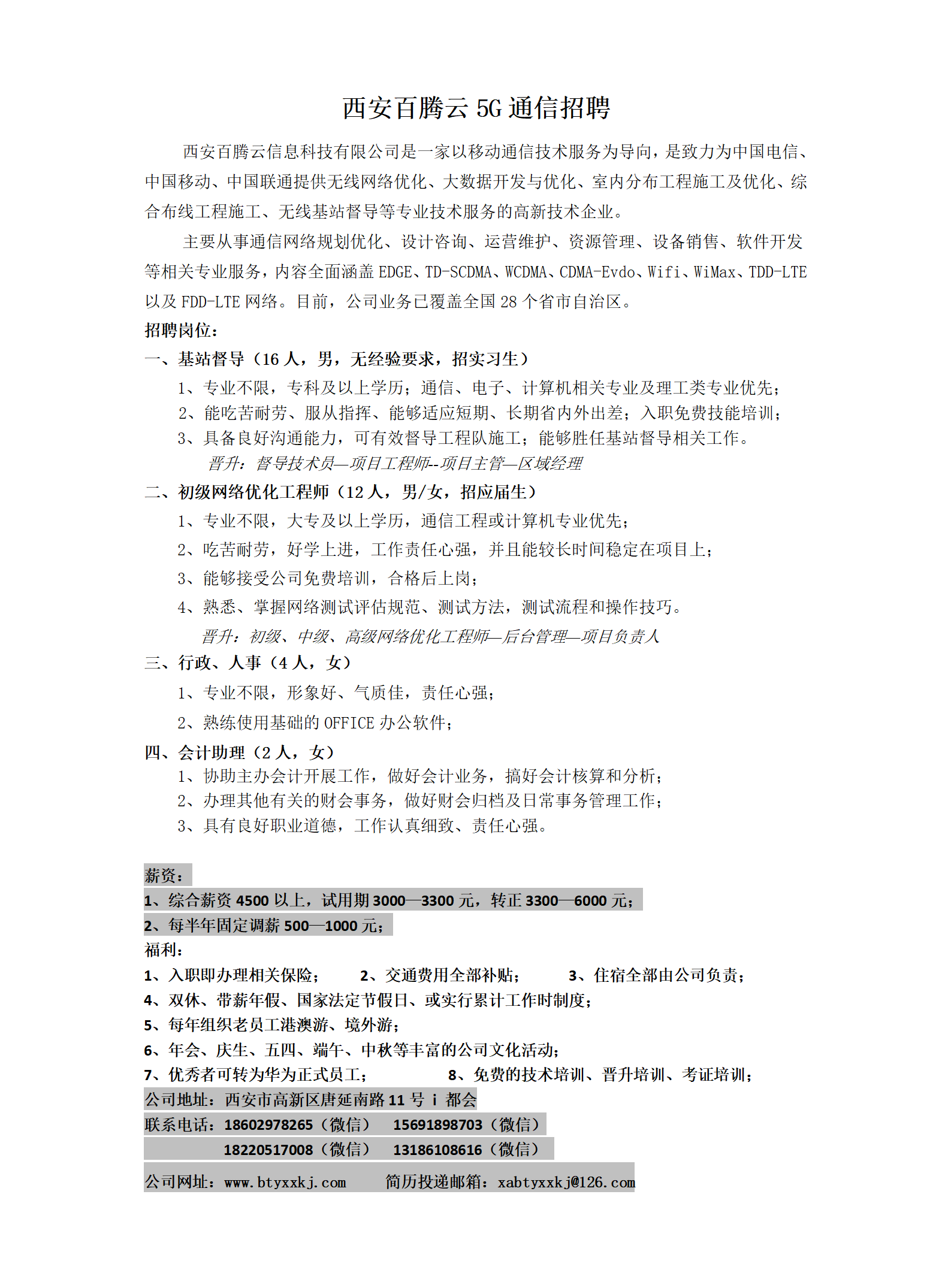 【招聘信息】西安百腾云信息科技有限公司招聘简章