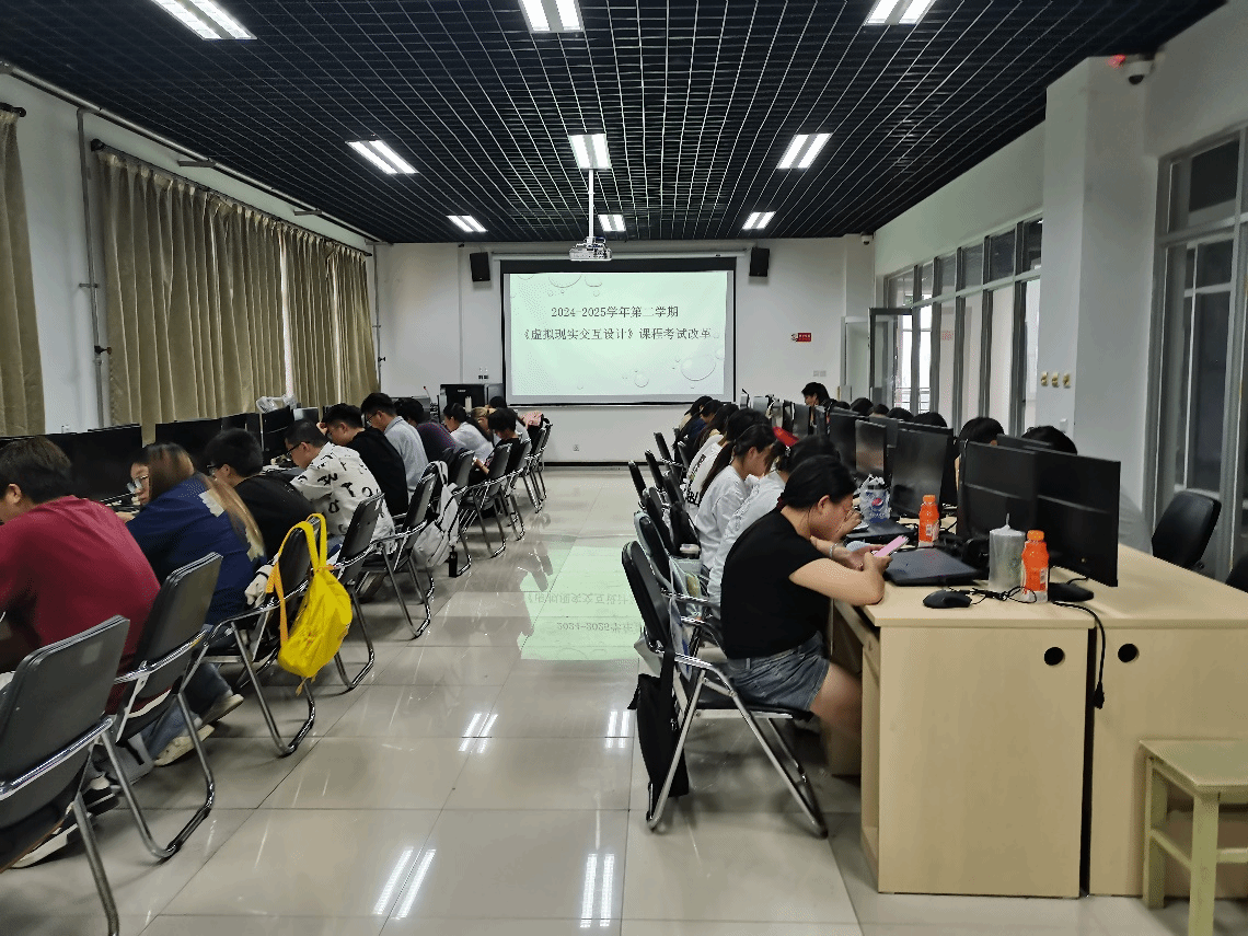 2025年6月23日晚,信息工程学院动漫制作技术专业2023级3个教学班分别在醒钟楼NOD629、NOD633、NOD637实训室圆满完成了《虚拟现实交互设计》课程考试改革的期末总结性考核。