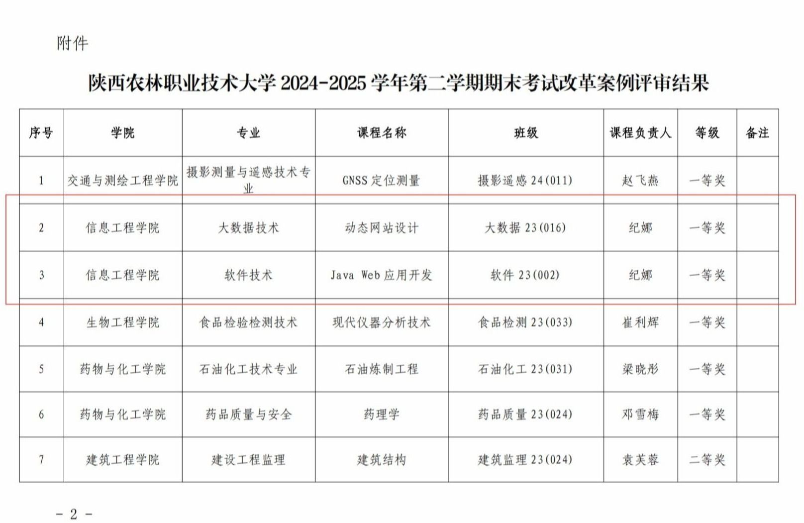 2025年10月22日,陕西农林职业技术大学2024-2025学年第2学期期末考试改革案例评审结果正式公布。我院荣获一等奖2项,二等奖2项,三等 3项。