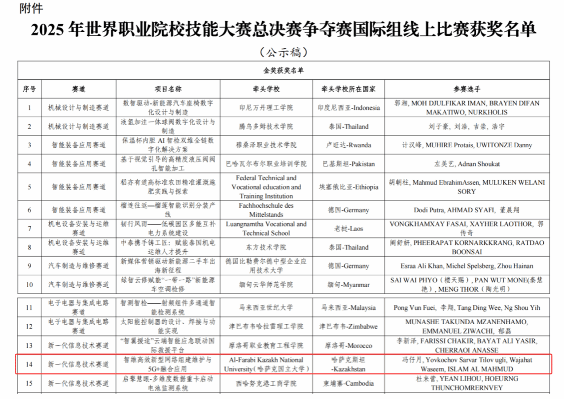 在世界职业院校技能大赛中实现了历史性突破。我院参赛团队在“新一代信息技术”赛道高职二组比赛中荣获银奖。在“新一代信息技术”赛道国际组比赛中,我院代表队再创佳绩,勇夺金奖。本次金奖不仅是我院在此项国际顶级赛事中的首金,也实现了陕西省在该赛道上金牌零的突破,创造了新的历史纪录。