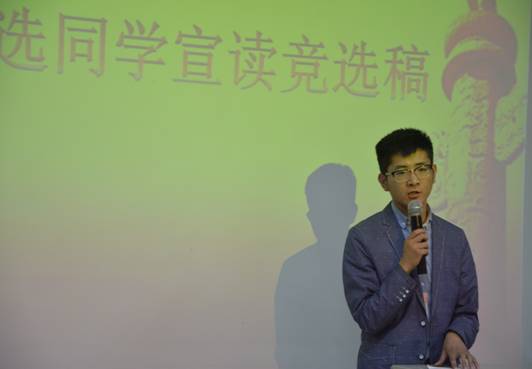 选举大会分为竞选演说和选举投票两大环节,每位参选同学都有三分钟时间以表述自己的参选理念,十四位参选都简明扼要精彩纷呈的演说不断博得全场同学的热烈掌声,近一个小时的演说环节结束后顺利进入投票环节,每一位代表都认真负责的投下了庄严的一票。