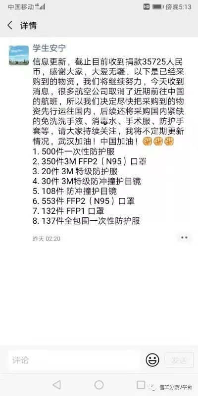 他说近期一直在为物资筹备奔忙着,自从通过朋友圈进行捐赠号召开始,就立马得到了身边朋友、国际友人以及同乡的大力支持,在大家的支持下,目前已经筹集到了一批所需物资,后续物资也在抓紧跟进。