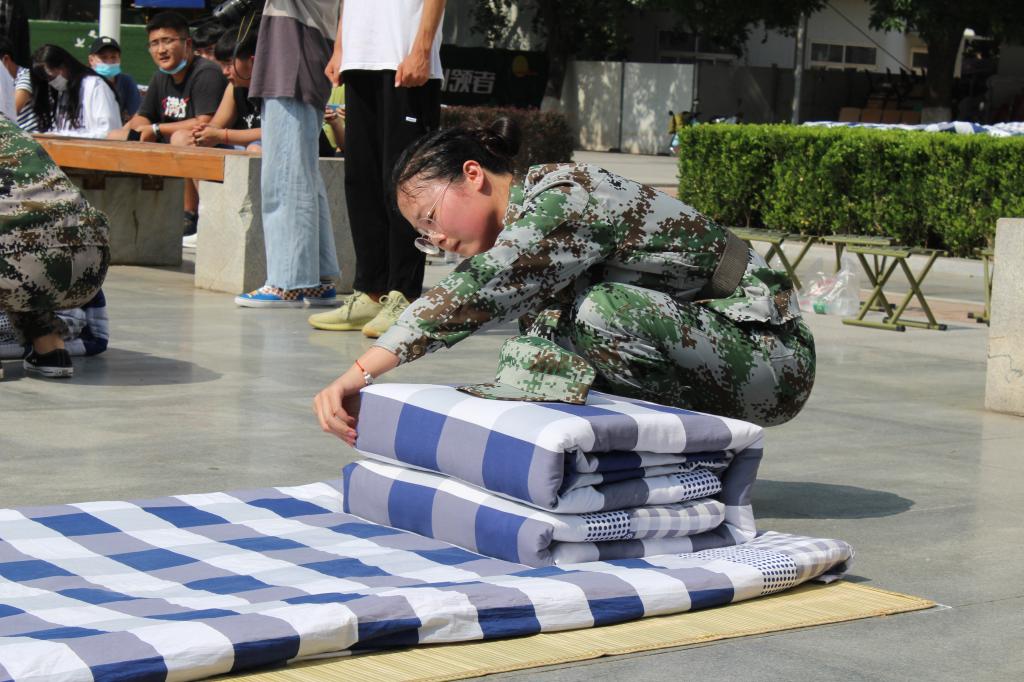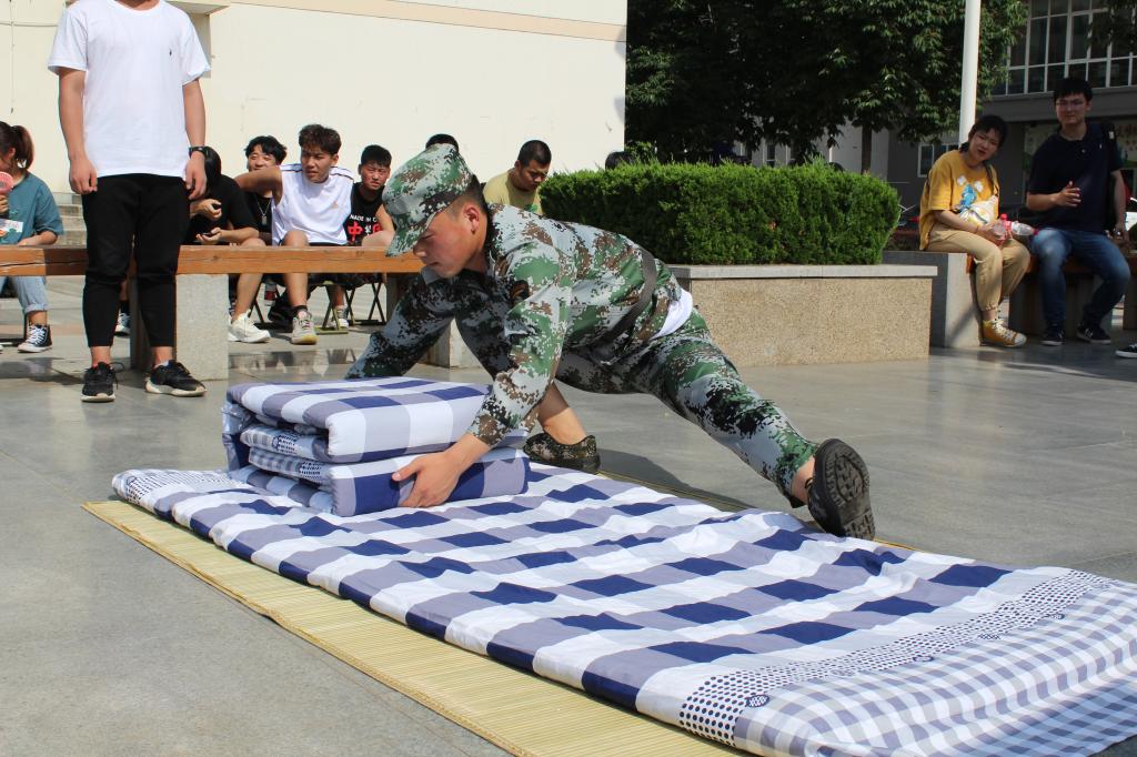 比赛当天为节省同学们体力,学生工作办公室安排专车送队员到南校区比赛现场。比赛时,来自11个分院的44名选手精神饱满,群情激昂,均能以饱满的精神状态投入到比赛当中,他们个个动作干练,手法娴熟。闪展腾挪间,被子就像一个个“豆腐块”,褥子平整的像“溜冰场”,一样展现在评委和观众面前,赢得了评委和观众的一致好评。