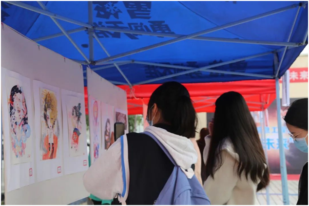 文化节现场分为分院简介区、书画艺术区、摄影作品区、设计作品区和设备体验区。从不同角度展示出了信息工程分院的专业建设成果和同学的实际操作能力。