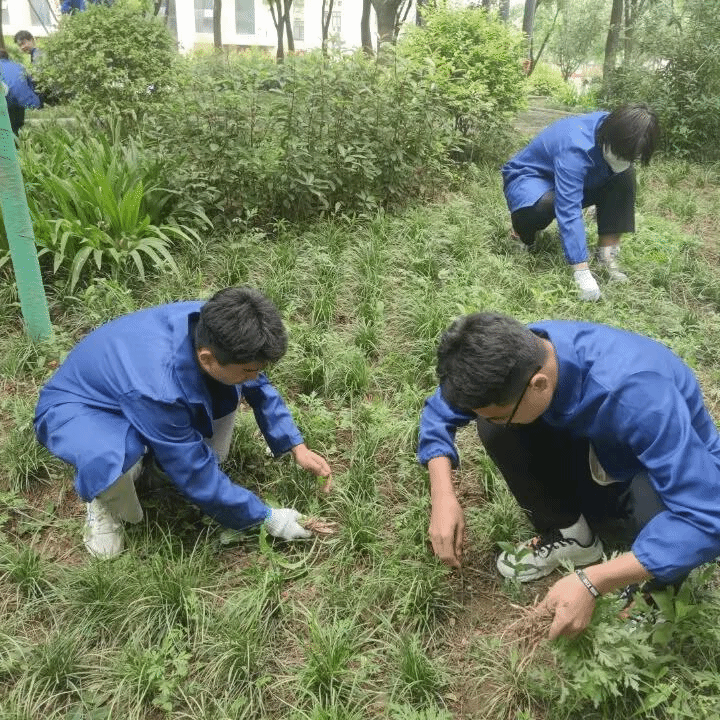 辅导员崔建鹏等几位老师和同学们都共同参与到拔草活动中,大家以小组为单位,展开了一场紧张的“拔草比赛”。不怕脏,不怕累,每位同学都在汗流浃背中感受着劳动的意义。在拔草的过程中同学们虽然累,但是依然能听到他们爽朗的笑声和看到脸上充满朝气的笑容。