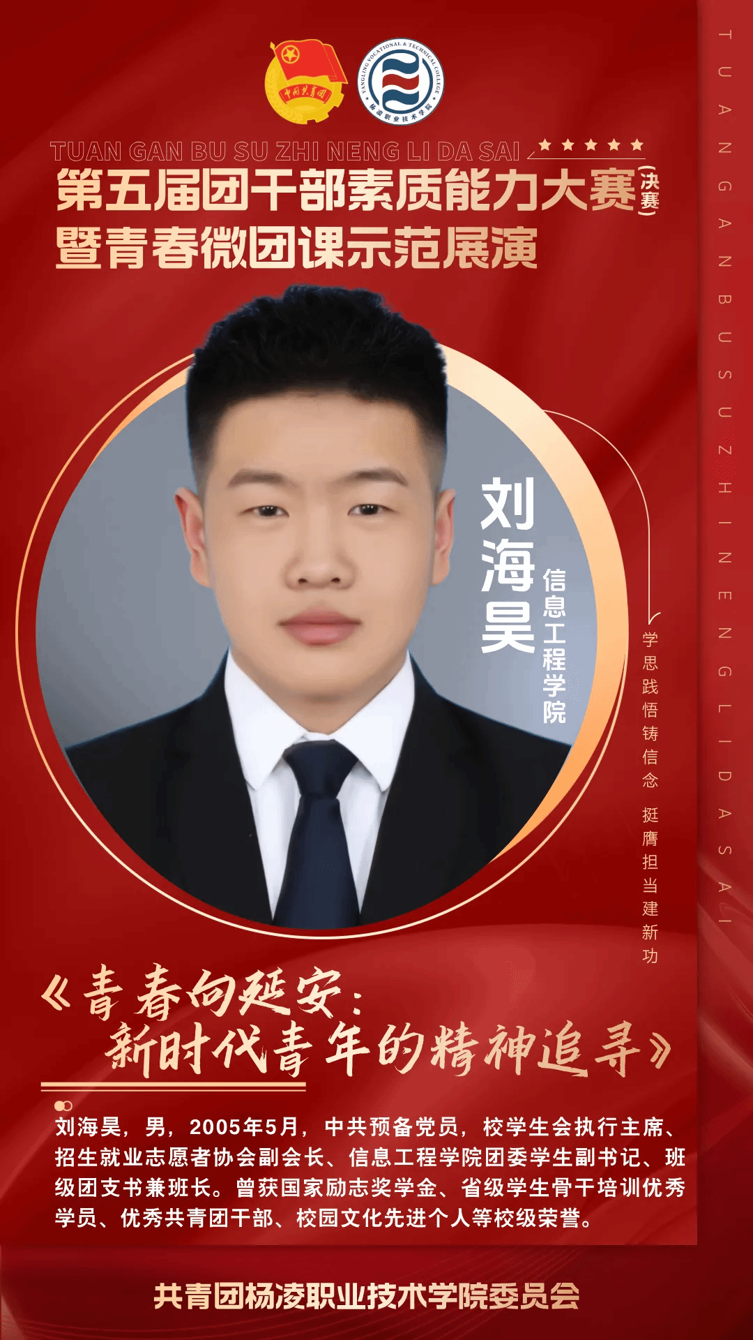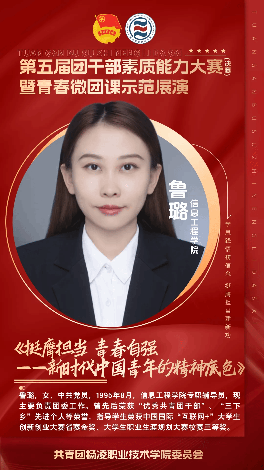 在决赛的团课讲授环节中,三名团干部结合特色主题和时代背景,分别以《把青春融进祖国的江河》《挺膺担当 青春自强——新时代中国青年的精神底色》《青春向延安:新时代青年的精神追寻》为主题,围绕党的重要思想,结合杨职校史校情和学校专业特色,生动形象的阐释了中国共产党发展过程中的累累硕果,带领杨职学子在先锋模范的英雄事迹中追溯红色记忆,深刻感悟习近平总书记寄予青年的殷切希望和深情嘱托,展现了中国特色社会主义强国建设中的青年力量。
