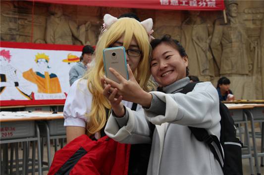 考生与现场cosplay同学合影