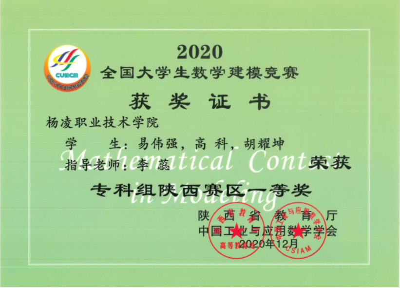 在校情况:本人在校期间参加了中国农民丰收节活动,并获得优秀个人荣誉证书;与此期间还参加了学校组织的第十八届学生职业技能赛“数学建模能力项目”并获得个人赛二等奖;同时参加了全国大学生数学建模竞赛,并获得专科组陕西赛区二等奖。大二参加农高会社会实践活动,并获得突出表现奖,与此期间参加了学校组织的第十九届学生职业技能竞赛,并获得计算机网络应用项目个人赛三等奖。第二学期参加了全国大学生数学建模竞赛,并获得专科组陕西赛区一等奖。