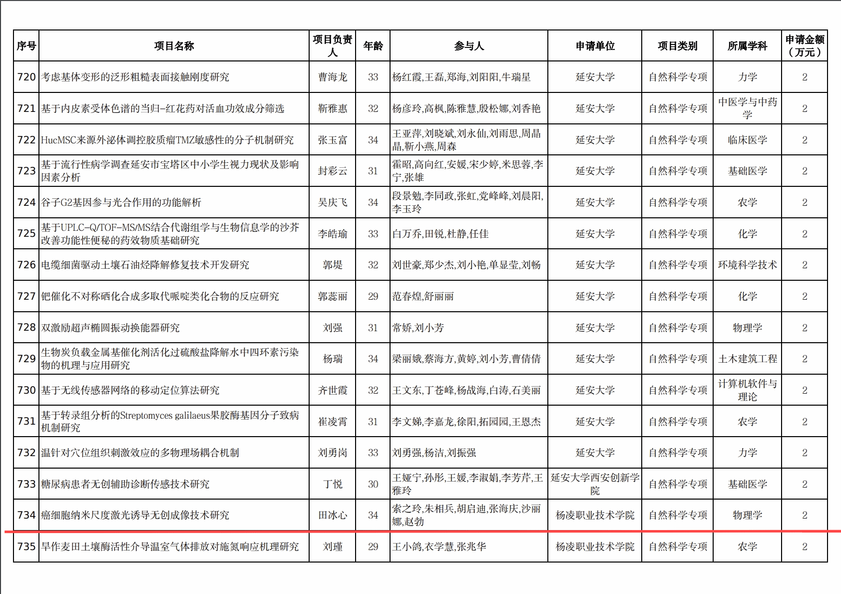 根据《陕西省教育厅关于印发<陕西省教育厅科学研究计划项目管理办法>的通知》(陕教〔2022〕20号)和《关于组织申报2024年度陕西省教育厅科学研究计划项目的通知》(陕教技办〔2024〕11号)要求,陕西省教育厅组织开展了2024年度科学研究计划项目的申报和评审工作。经各高校遴选推荐,省教育厅形式审查、专家评审、厅务会审议等环节,立项2024年度陕西省教育厅科学研究计划项目1489项