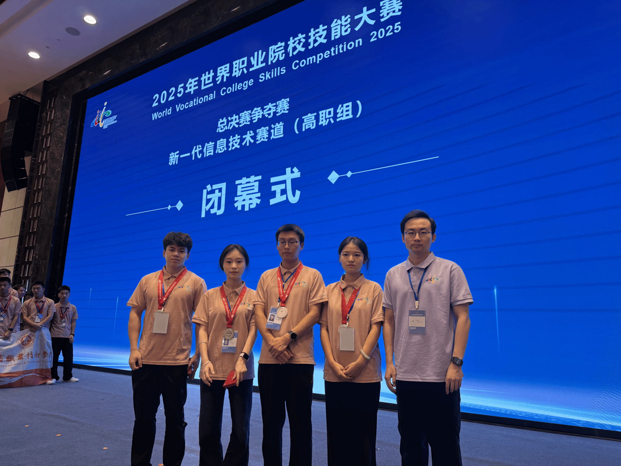 2025年9月7日至12日,世界职业院校技能大赛总决赛“新一代信息技术”赛道高职二组竞赛在江苏常州工业职业技术学院成功举办。本次赛事由教育部等35个国家部委联合主办,江苏省教育厅具体承办,共吸引全国31个省、市、自治区的60支精英队伍参赛。我院霍鹏、樊勇杰、冯仔月、梁超四位同学组成的参赛团队,凭其借创新项目《星地协同,5G-A天地一体应急通信系统》,以精湛的专业技能和突出的实践创新能力荣获银奖。