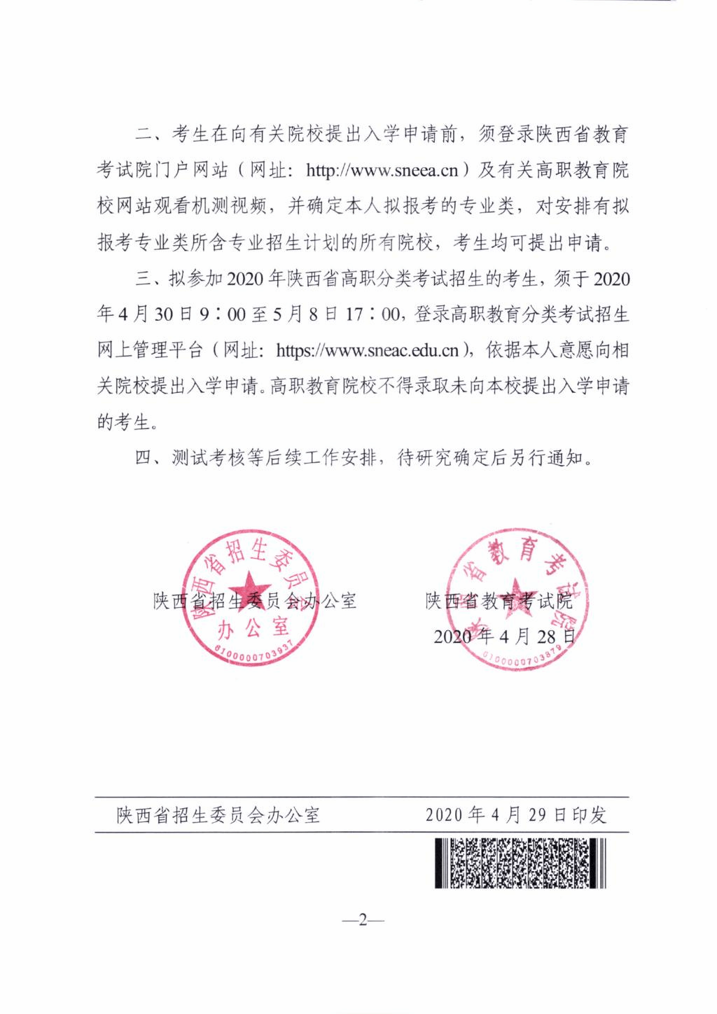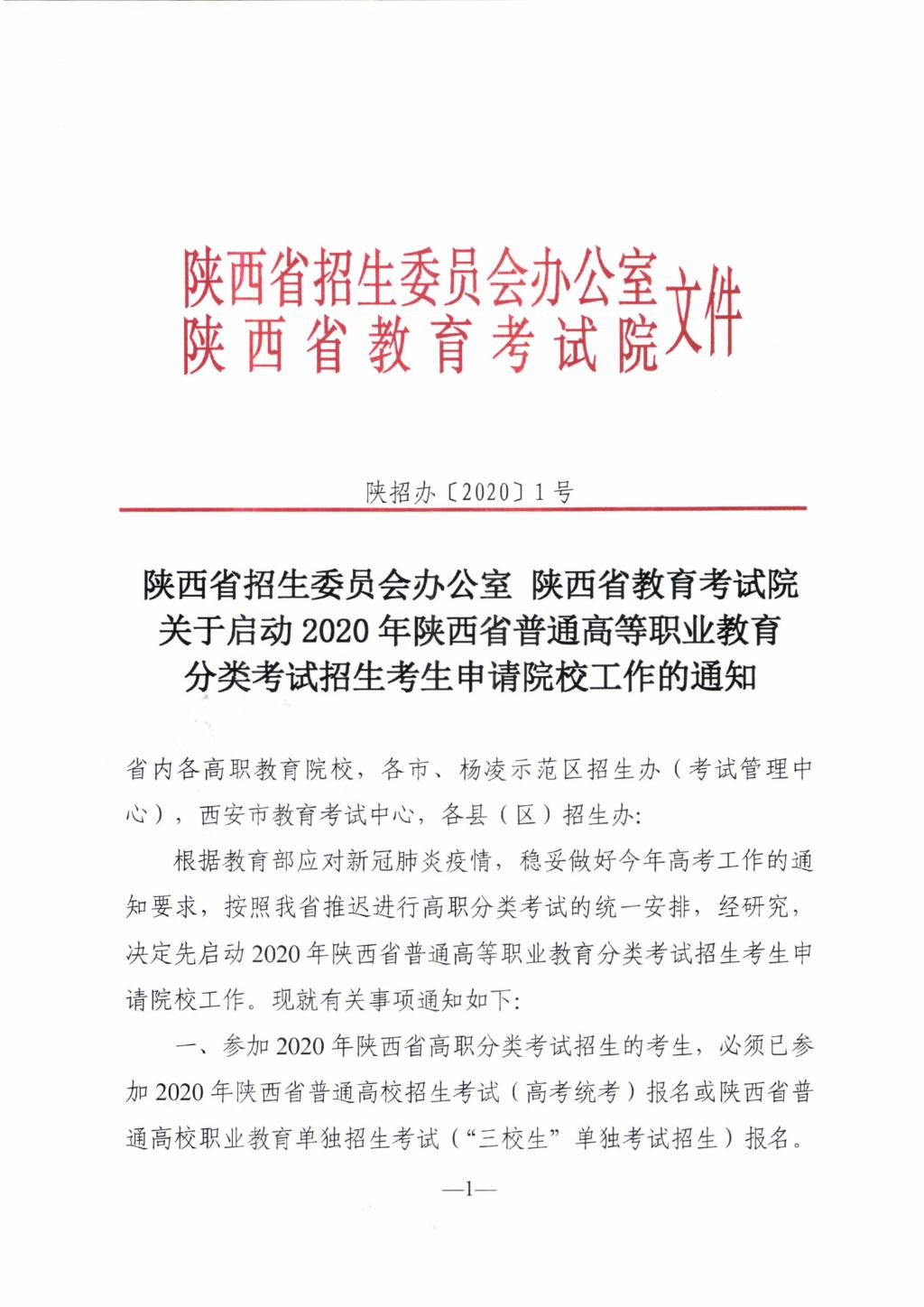 关于启动2020年陕西省普通高等职业教育分类考试招生考生申请院校工作文件
