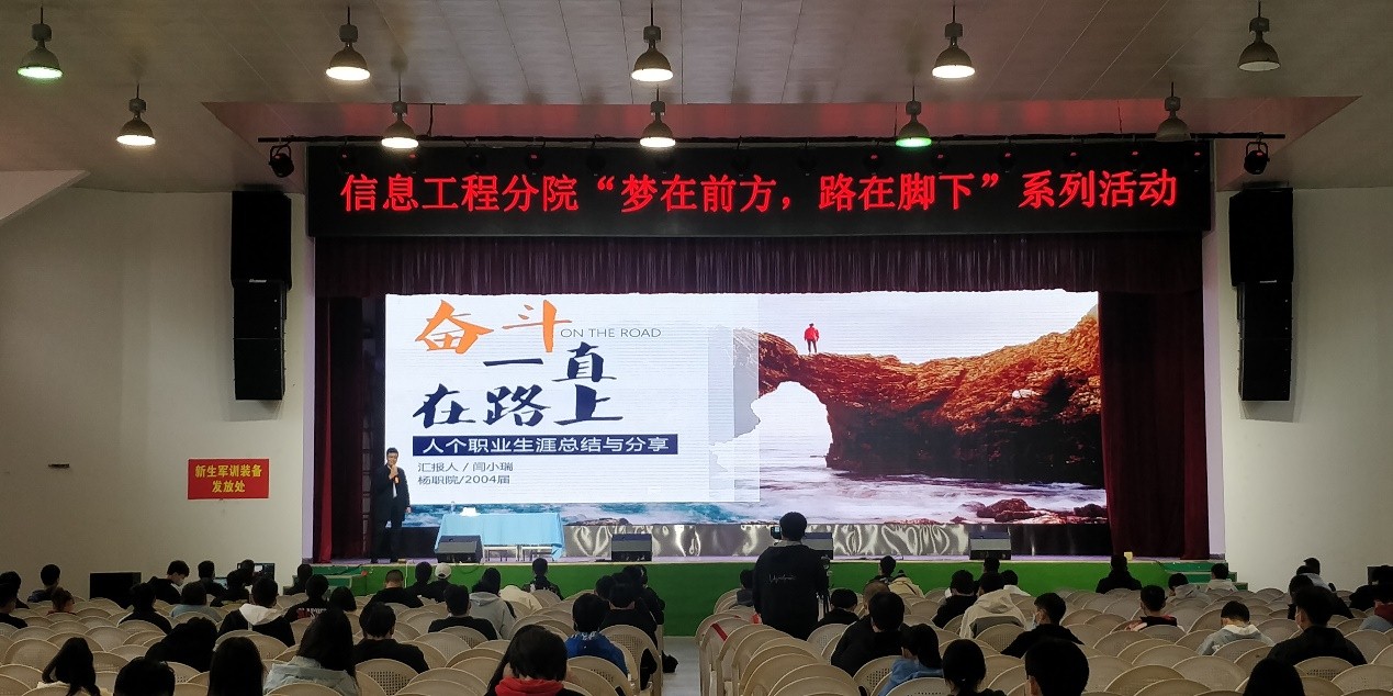 10月13日至16日,信息工程分院在南校区一卡通中心隆重举行“梦在远方、路在脚下”系列讲座活动。本次系列讲座活动,有来自南京中兴信雅达信息科技有限公司副总裁张颖,中国移动集团陕西有限公司杨凌分公司总经理王东、工程师张昭,深圳讯方技术股份有限公司西北区域总监潘程佳,西安索尔软件科技有限公司副总经理陈守强、工程师于玉泰、章于西,杨凌李台派出所警官张大伟,李志朋、杜福忠、闫晓瑞、罗超4位分院毕业校友,李岩、王晓娟等3位校内专家,开展系列讲座活14场次。通过在南校区一卡通中心线下相对集中观看,各教室、宿舍线上直播的方式同步开展,分院900余名新生聆听了系列讲座。