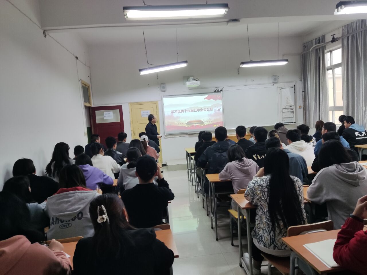 信息工程分院党总支副书记吴高潮为学员进行了第一讲:学习党的十九届五中全会公报。他带领学员一起学习了“十四五”的指导思想和原则,我国发展环境面临的深刻复杂变化,“十四五”时期经济社会发展主要目标,实现奋斗目标的12方面具体举措等内容。他希望学员们以本次集中培训为新起点,以更高的标准,更严的要求,更优的成绩,争取早日成为一名光荣的共产党员。