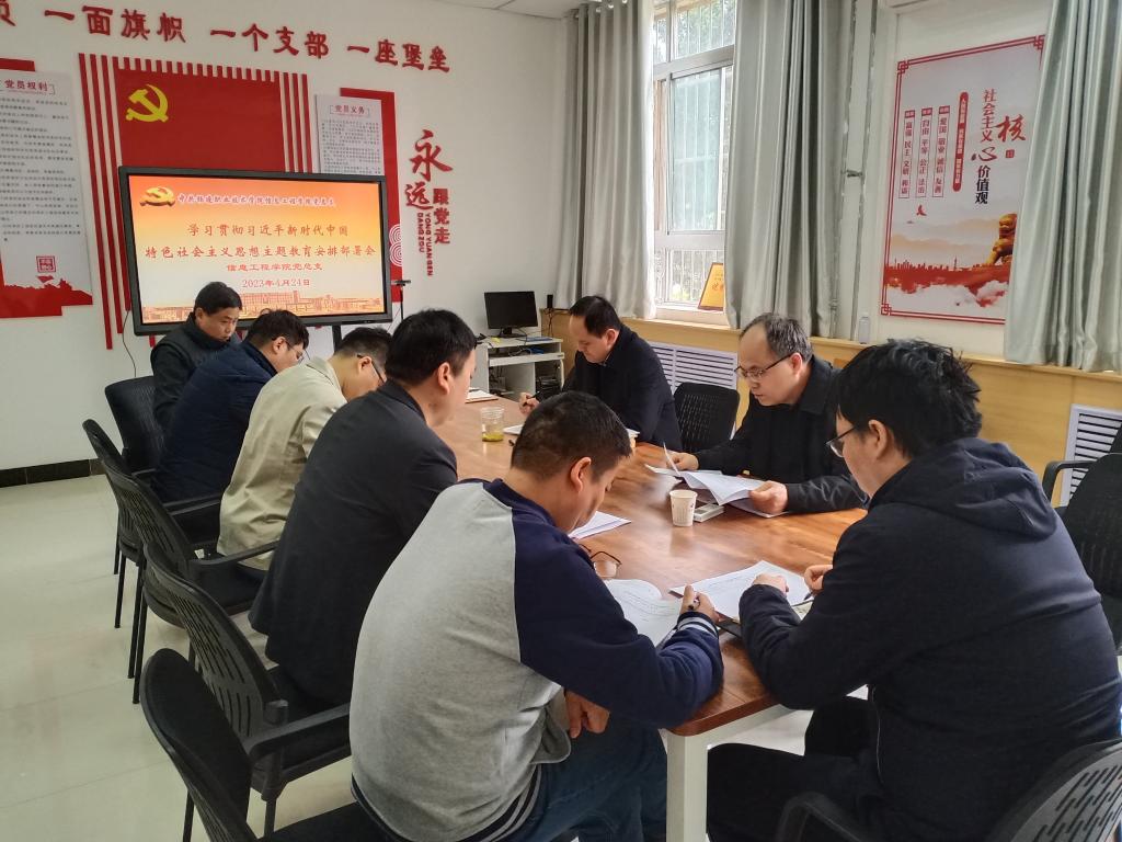 2023年4月24日下午,信息工程学院召开党总支扩大会议,总支委员和支部书记全部参会,总支副书记吴高潮对学习贯彻习近平新时代中国特色社会主义思想主题教育进行了安排部署。