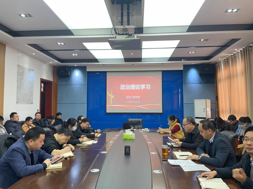 按照学院党总支政治理论学习计划安排,11月27日下午,信息工程学院党总支组织全体党员在秦风楼4楼会议室开展政治理论学习,要求大家认真学习,深刻领悟会议精神,做好学习笔记。