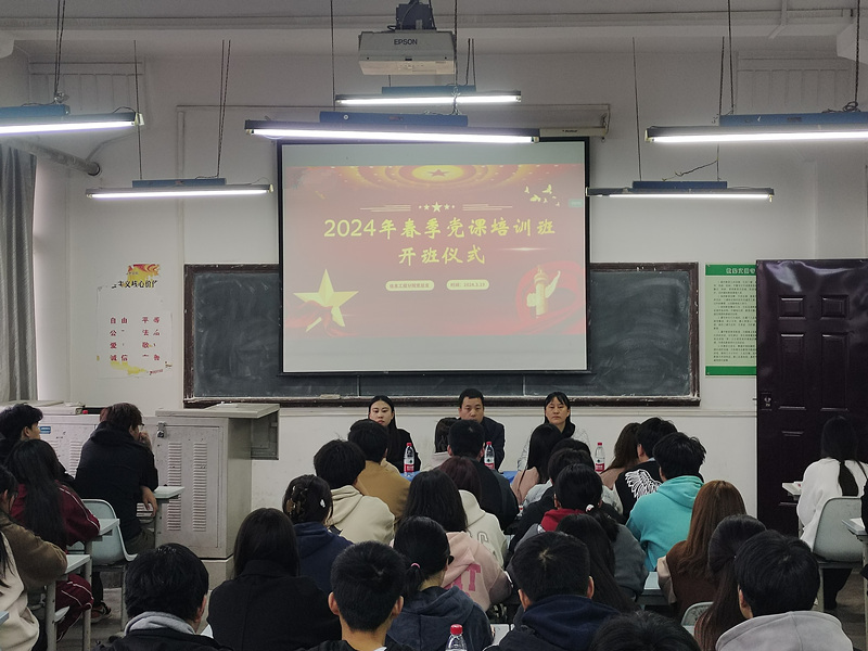 按照学校党校关于入党积极分子培训总体部署,信息工程学院党总支精心筹划,认真准备,3月19日18点30分在致用楼B1-503教室,信息工程学院党总支2024年春季入党积极分子培训班正式开班。开班仪式由党总支党务秘书梁晶晶主持,学院网络技术党支部书记冯春卫、学院团总支副书记鲁璐、培训班一班61名学员参加开班仪式。