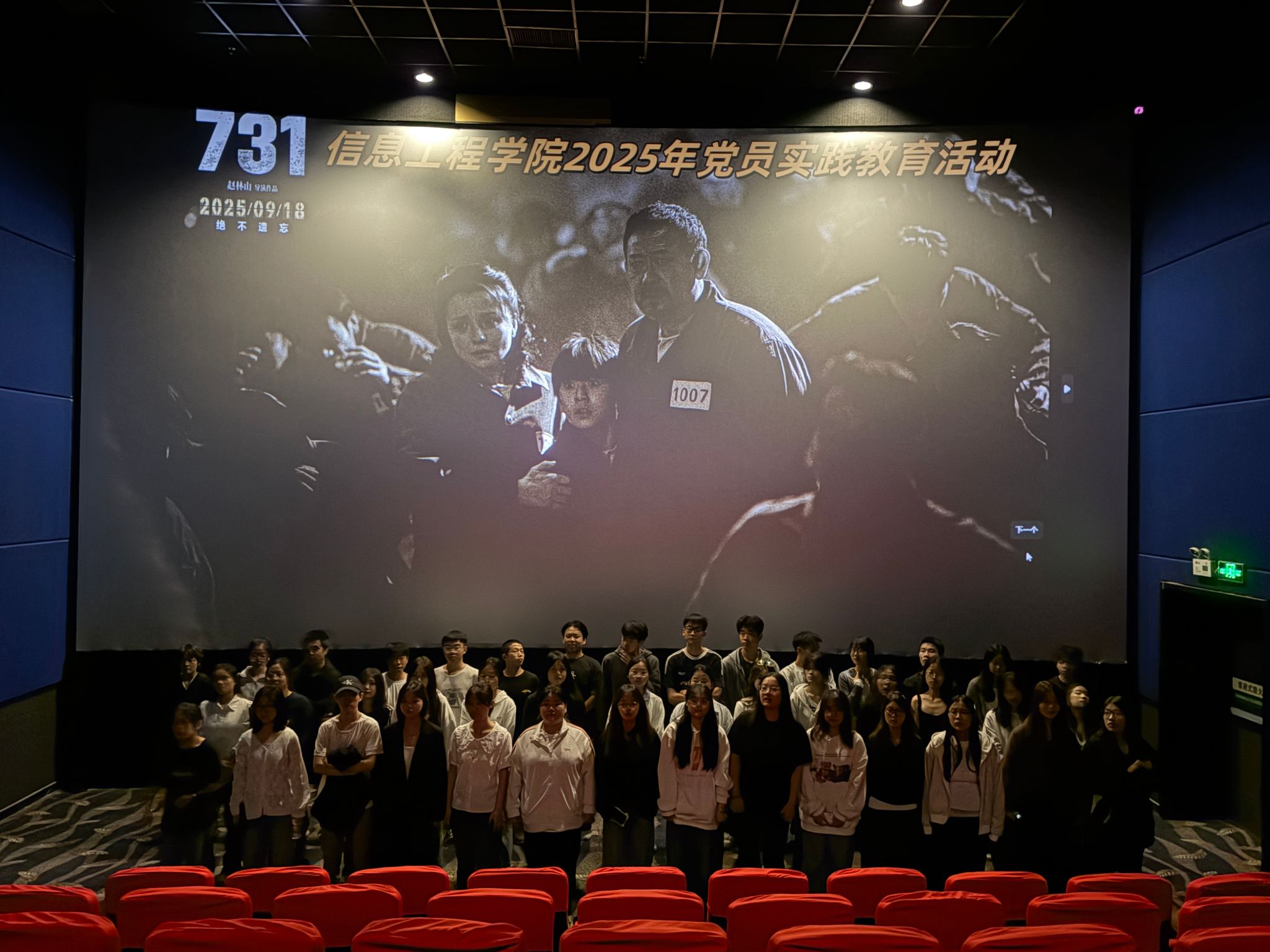 2025年9月26日,信息工程学院党总支为深化爱国主义教育,筑牢学生党员的历史责任感和时代使命感,组织了43名学生党员和30名积极分子集体观看了揭露日本侵华罪行专题纪录片《731》。
