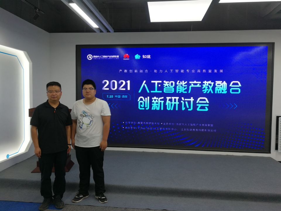 2021年7月10日,由西安市人工智能产业发展联盟主办,华为云(西安)人工智能创新中心和江苏知途教育科技有限公司承办的2021人工智能产教融合创新研讨会在西安运维国际总部大厦B座召开,信息工程学院闵卫锋和岳超刚2位老师参加了研讨会。