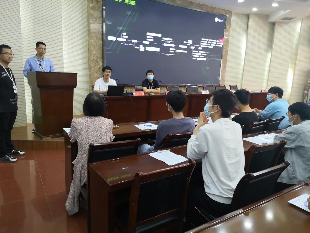 接着,在与会人员的见证下,校企双方领导共同签订校企合作协议,同时为人才培训基地揭牌,并合影留念。最后参会的学生代表与四叶草公司进行了热烈的互动交流。
