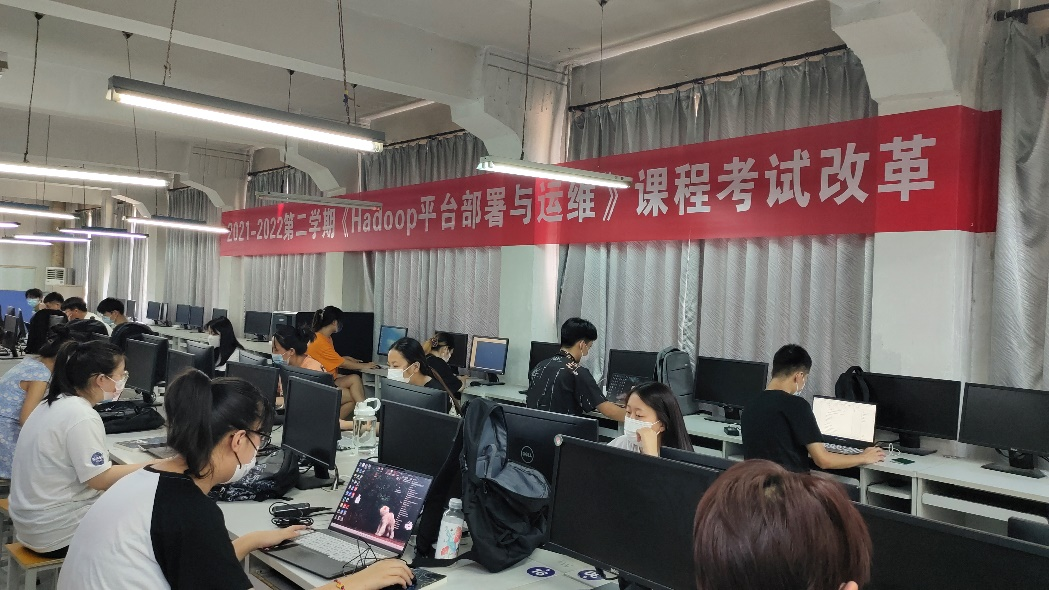 2022年7月1日,2021级大数据技术专业《Hadoop平台部署与运维》考试改革课程在北校区致用楼401,403顺利进行。参于此次考试改革课程的班级有大数据21007,大数据21008,大数据21009,大数据21010四个班级。