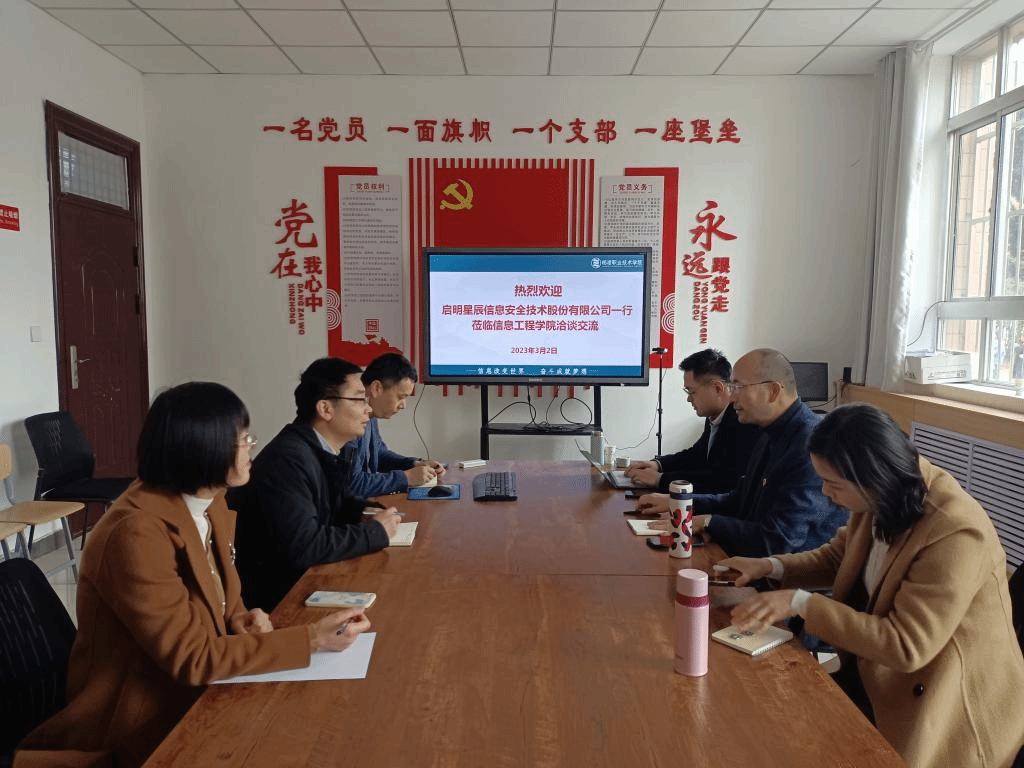 3月2日上午,北京启明星辰信息安全技术有限公司西北销售总监刘刚一行三人来我校洽谈交流校企合作。信息工程学院院长陈高锋、副院长熊刚及冯春卫等部分专业教师参加洽谈会。