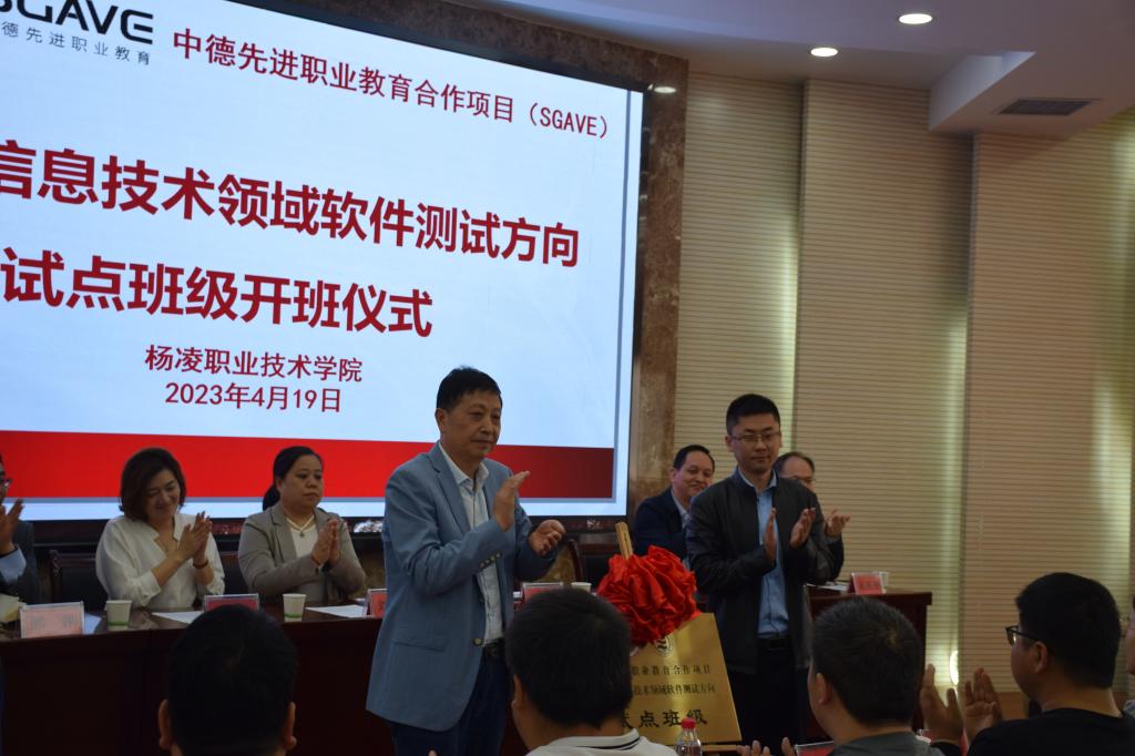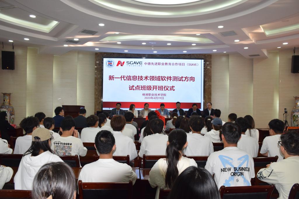 4月19日,我院举行中德先进职业教育合作项目(简称SGAVE)新一代信息技术领域软件测试方向试点班开班仪式。党委委员、副校长祝战斌,教务处处长刘新燕,SGAVE项目指导专家,信息工程学院院长陈高锋、党总支副书记吴高潮、副院长熊刚、实训科科长陈阳,试点班级全体师生出席。开班仪式由院长陈高锋主持。
