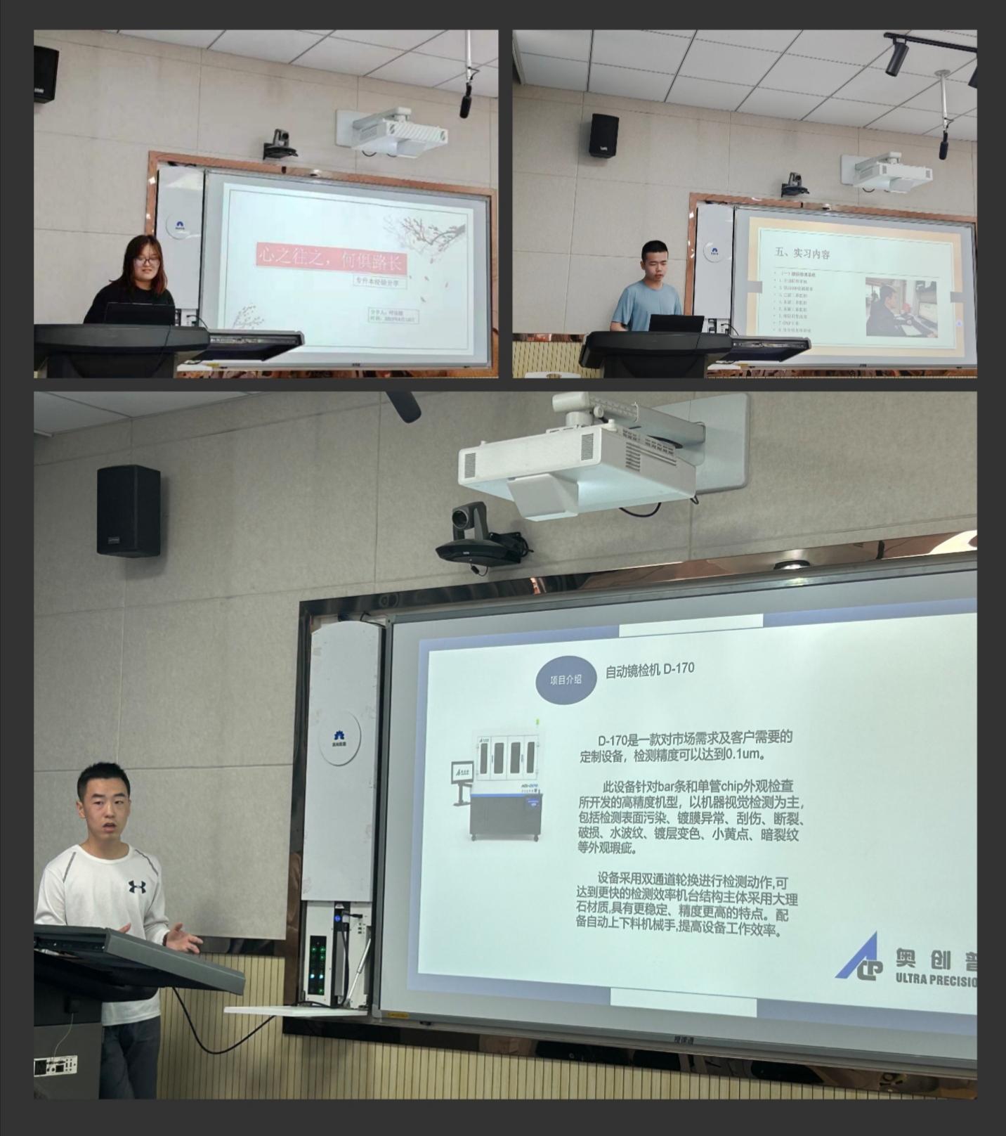 此次答辩会分为学生汇报和教师提问两个环节。学生以图文并茂的形式,结合PPT演示,从实习目的、实习单位介绍、岗位工作、实习内容、实习总结与体会等方面进行了汇报,在答辩过程中,每位实习生展现出了卓越的表现和出色的专业素养。可以看出,本次实习中同学们能够将学校所学的知识与技能和岗位实际工作紧密结合,实习经历促使他们解决问题、交际沟通、团体协作和职业规划能力都得到了提高。接着,企业指导教师和学校指导教师针对每个学生的实习提出相关问题,学生现场进行解答,答辩氛围既专业严肃,又温馨和谐。陈高锋院长对本次答辩会进行了检查和观摩。最后,各位老师为毕业生们送上祝福和寄语,希望同学们能够在人生的道路上,保持勇气和坚持不懈的努力,追求自己的梦想并克服困难。