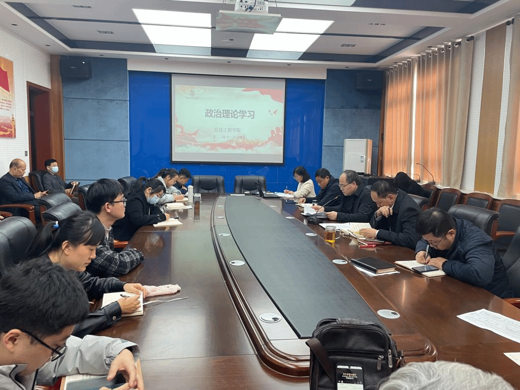 按照学院党总支政治理论学习计划安排,11月14日下午3点,信息工程学院组织全体教职工在秦风楼4楼会议室开展集中政治理论学习活动,要求大家认真学习,并做好学习笔记。
