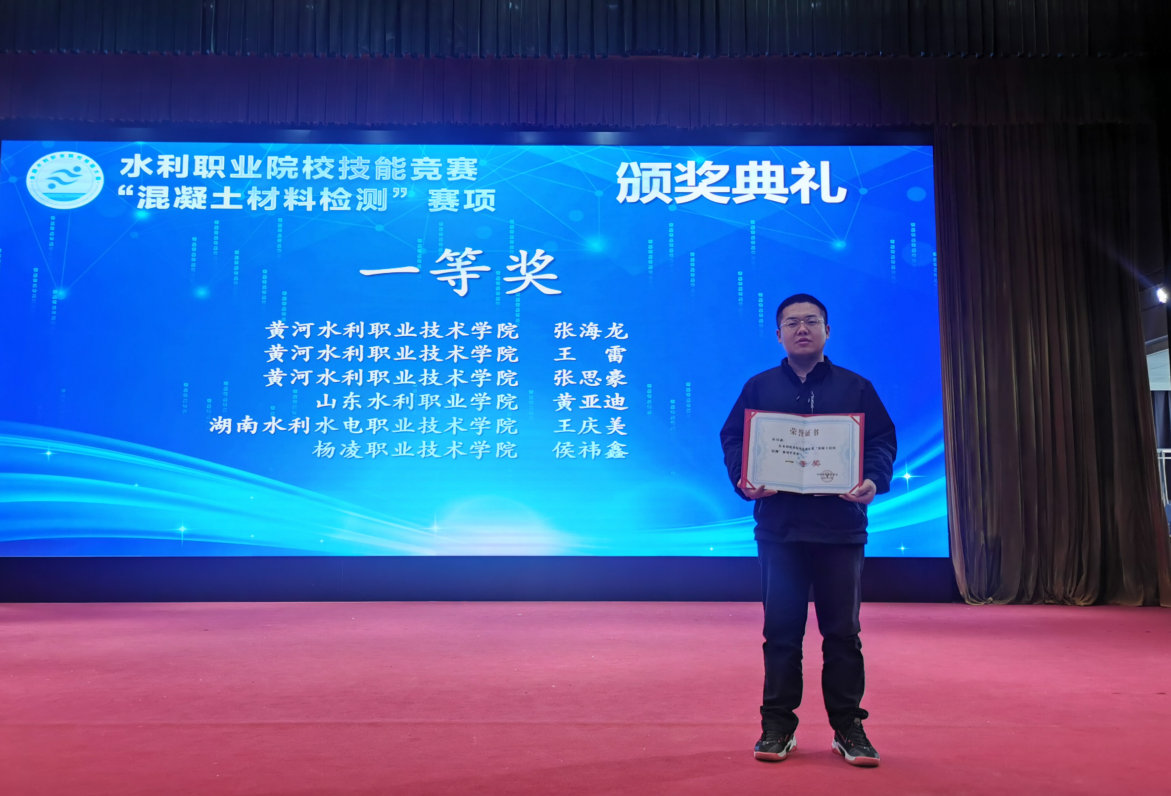 3月22日至25日,由中国水利教育协会主办的全国水利职业院校技能竞赛“混凝土材料检测”赛项(试点赛)在黄河水利职业技术学院举办,我校代表队分别获一等奖、三等奖。