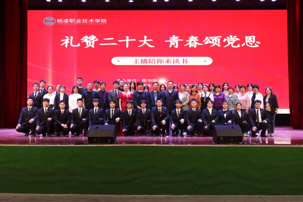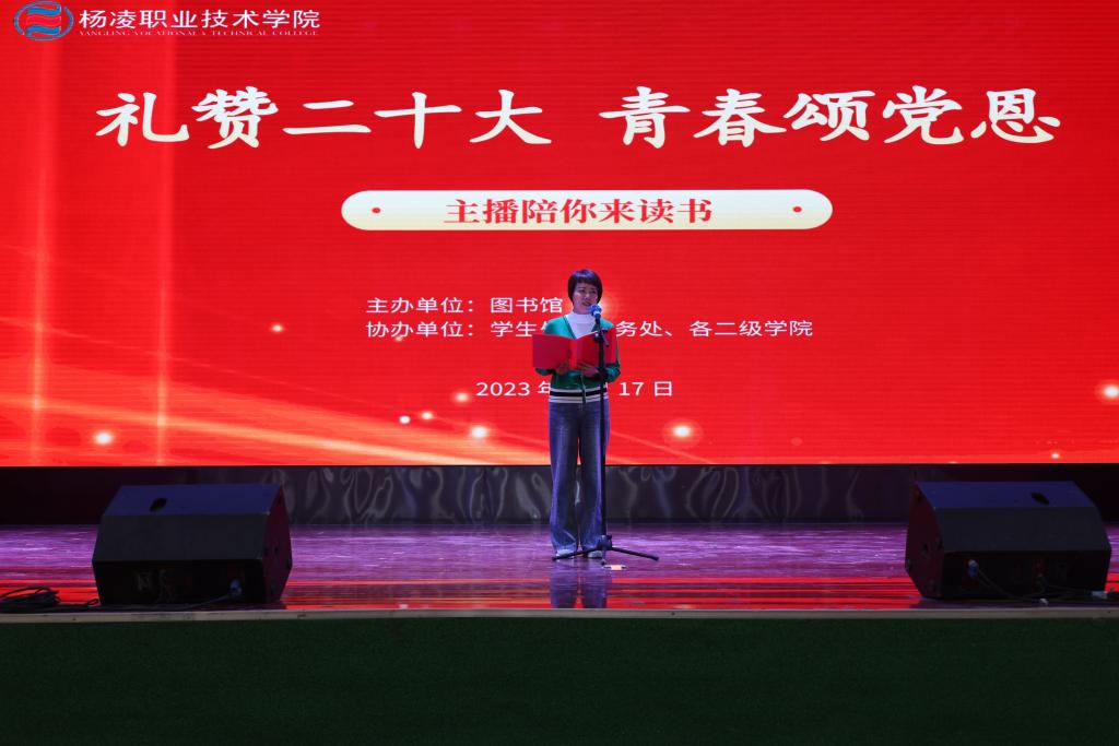 4月17日下午,我校“4·23世界读书日”系列活动启动仪式暨“礼赞二十大 青春颂党恩”主播陪你来读书朗诵活动在南校区一卡通中心举行。副校长祝战斌,超星集团西安分公司行政人事部总经理马云志,西安广播电视台主任记者张曦元,杨凌农科传媒集团通联部主任李慧,以及学生处、教务处、图书馆负责人等参加活动。