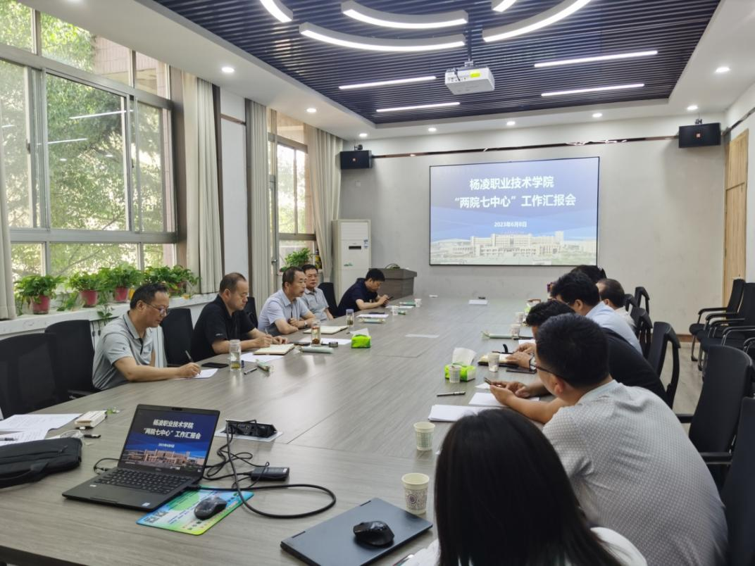 6月8日下午,学校召开“两院七中心”工作进展汇报会。副校长胡俊鹏出席会议并讲话,科技与教育研究处处长冯旭主持会议。