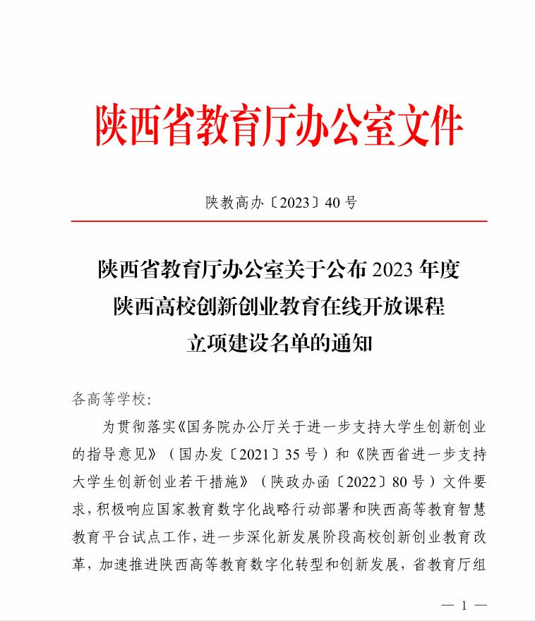 喜讯|我校获批6门陕西省高校创新创业教育在线开放课程