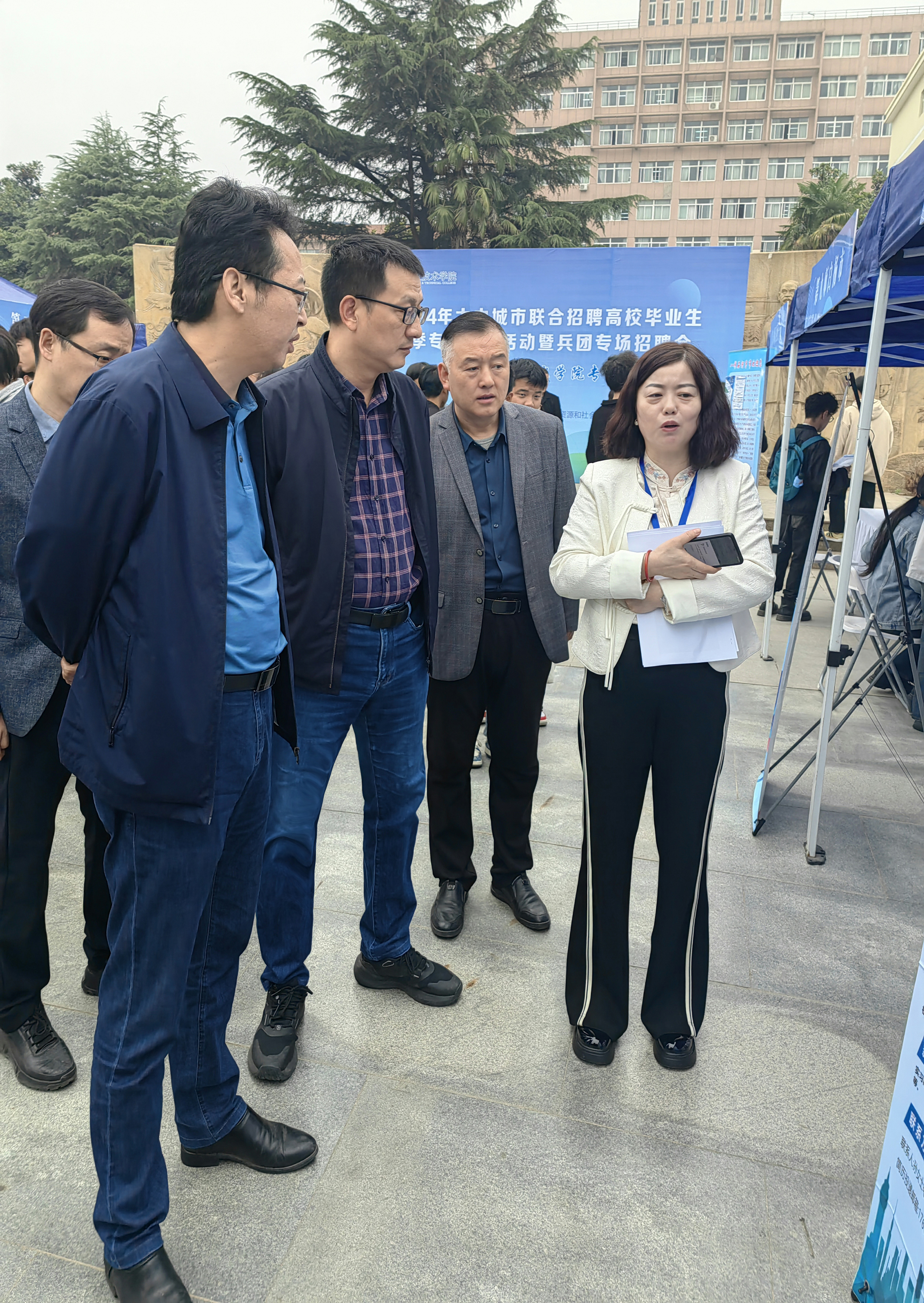 招聘会期间,蒋平江前往招聘会现场,与兵团招聘单位代表、用人单位和求职学生进行沟通交流,询问其招聘计划及往届毕业生在企业的发展状况等,并鼓励学生积极转变求职观念,把握机会,实现个人价值。