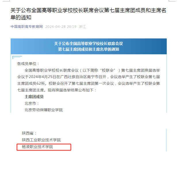4月24至25日,全国高等职业学校校长联席会议在广西南宁召开,我校入选第七届主席团成员。校长仲伟周,发展规划处、产教融合处负责人参加会议。