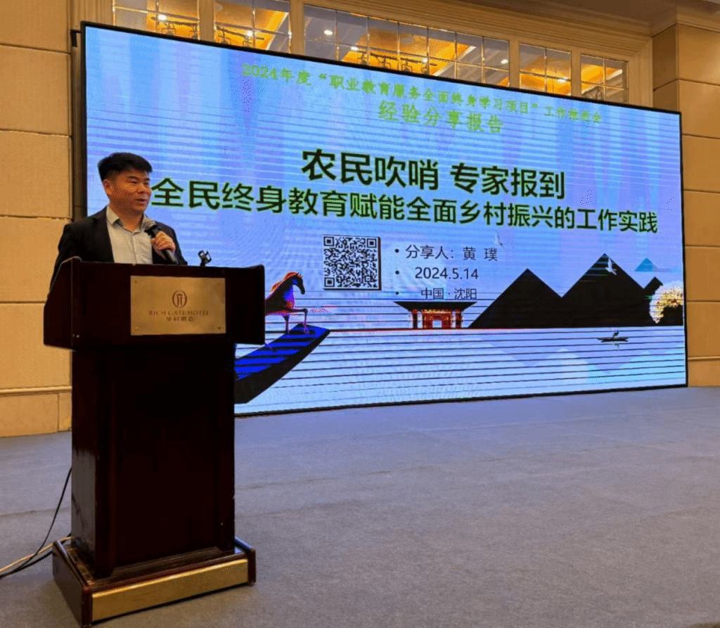近日,由教育部职成教司主办、中国成人教育协会承办的全国职业院校服务全民终身学习工作推进会在沈阳召开,来自全国130余所职业院校300余人参加会议。我校副校长胡俊鹏参加会议并交流发言,继续教育与培训学院以“农民吹哨 专家报到”为题作经验分享。