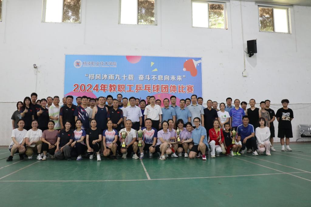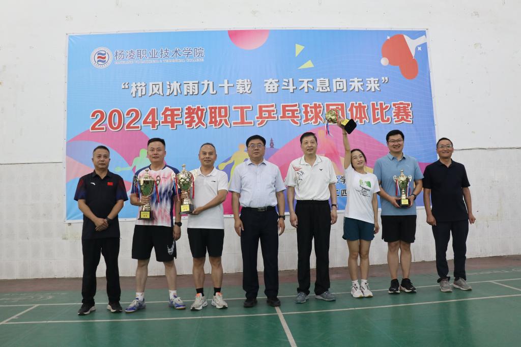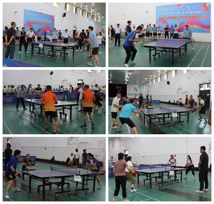 6月1415日,学校2024年教职工乒乓球赛在西校区乒羽中心举行。党委副书记刘瑞明,副校长祝战斌出席闭幕式并为获奖队颁发奖杯。来自17个基层分会的200余名教师参加了比赛
