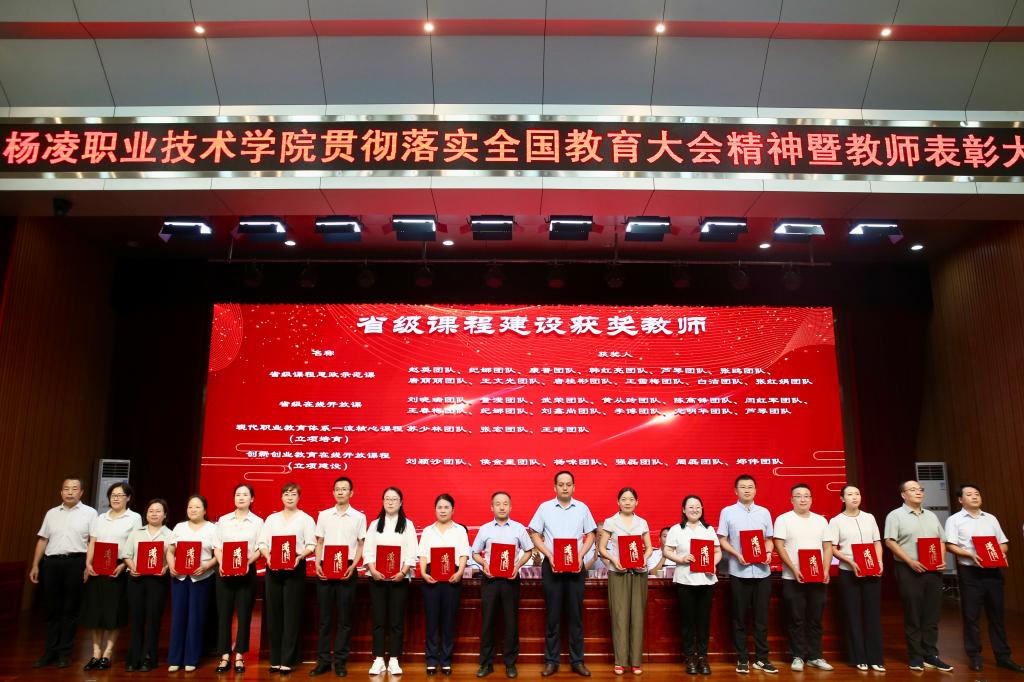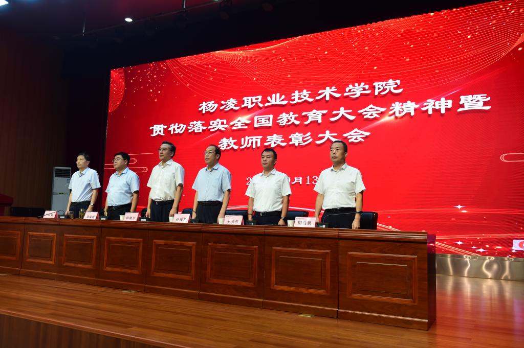 韩明军在讲话中,代表学校党委向全体教职工致以诚挚的问候,向老师们的辛勤付出和努力工作表示最崇高的敬意,向受到表彰的教师们表示热烈祝贺,并介绍了一年来学校取得的一系列标志性成果和显著发展成就。他指出,习近平总书记在全国教育大会上的重要讲话,为新时代广大教师的职业追求指明了方向、提供了根本遵循。他强调,作为教师,一是要守初心、担使命,做从教报国的践行者;二是要树品行、提能力,做立德树人的大先生;三是要抓教书、重育人,做学生成长成才的引路人;四是要挑重担、勇向前,做学校发展的推动者。希望广大教师认真学习贯彻落实全国教育大会精神,不忘初心、不辱使命,自觉维护学校形象和利益,在杨凌职院这个大舞台上,继往开来、不懈奋斗,奋力书写当代杨职人躬耕教坛的精彩答卷,努力开创学校事业发展的崭新篇章。
