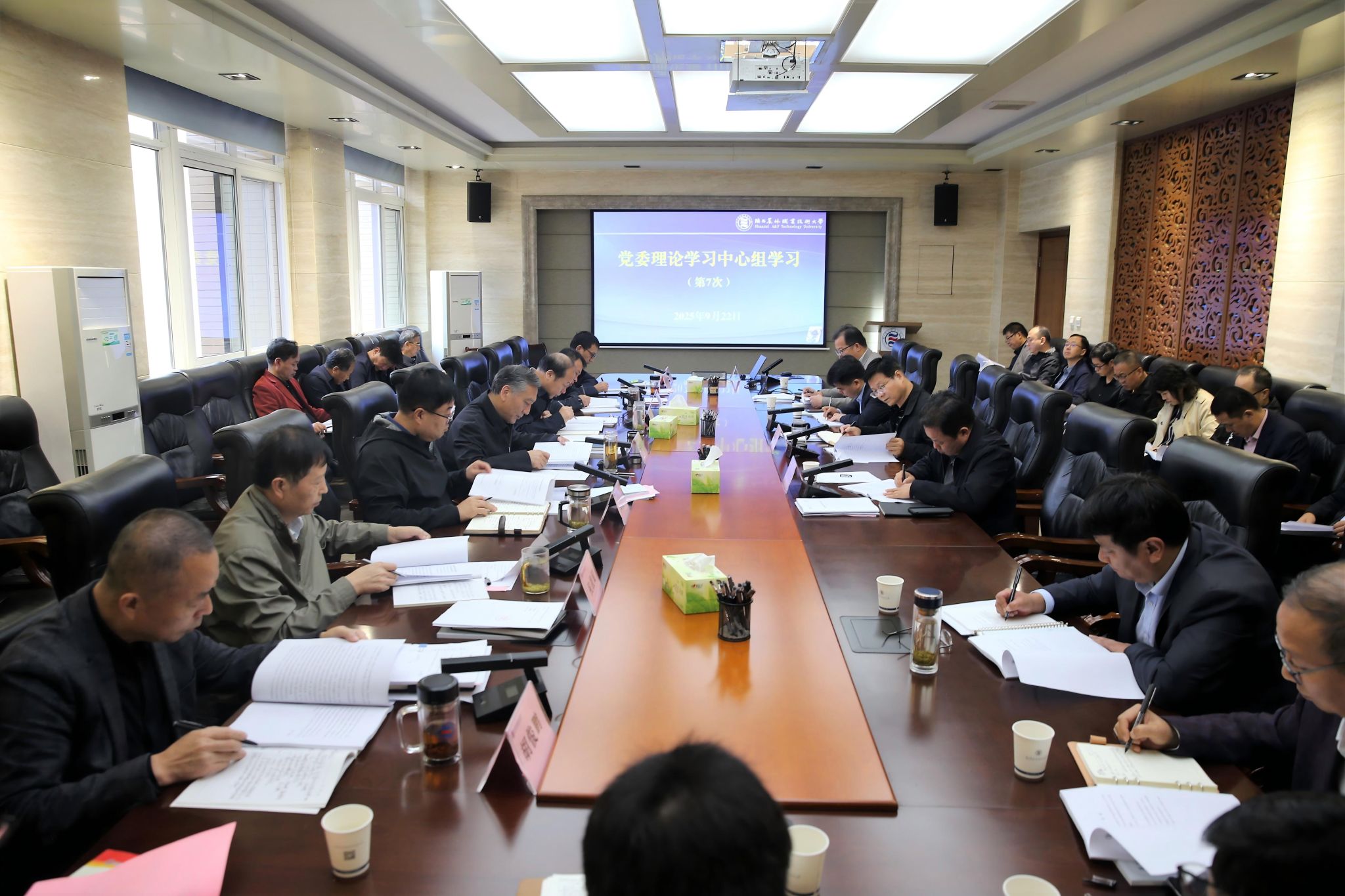9月22日上午,党委书记韩明军主持召开2025年第7次党委理论学习中心组学习会。党委理论学习中心组成员参加了会议。