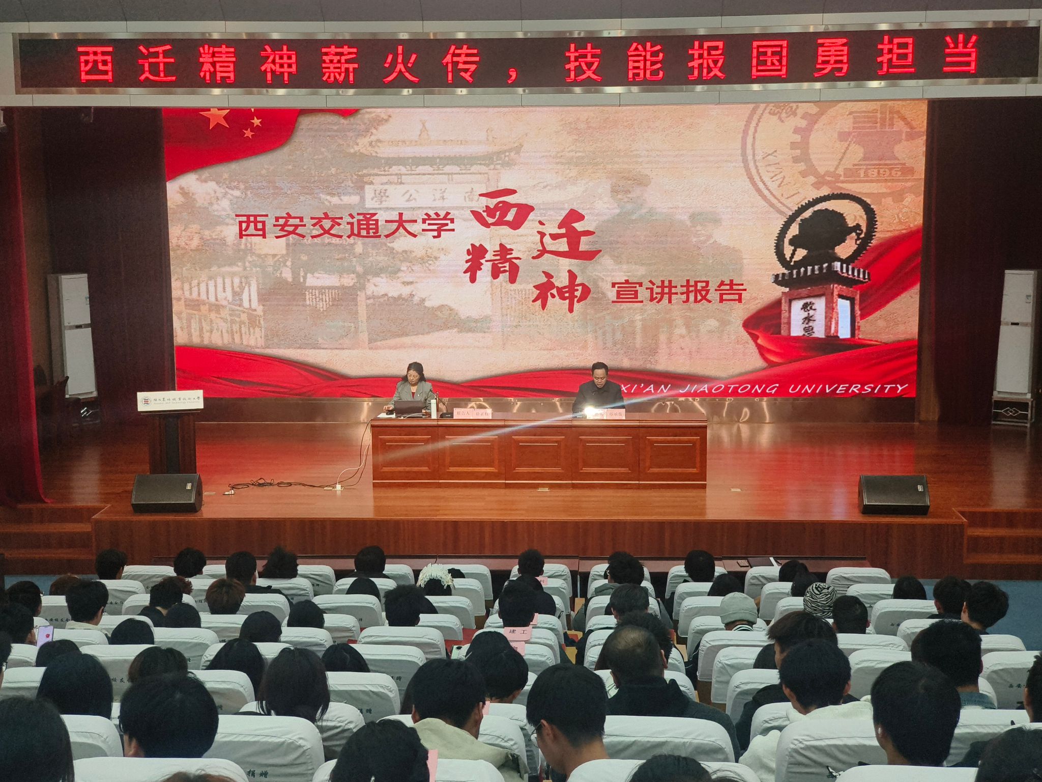 1128日下午,学校在南校区思辩堂举办西迁精神专题报告会,邀请西安交通大学副教授徐正红作西安交通大学西迁精神宣讲报告。学工部负责人,2025级辅导员及196名职业本科生聆听了报告。