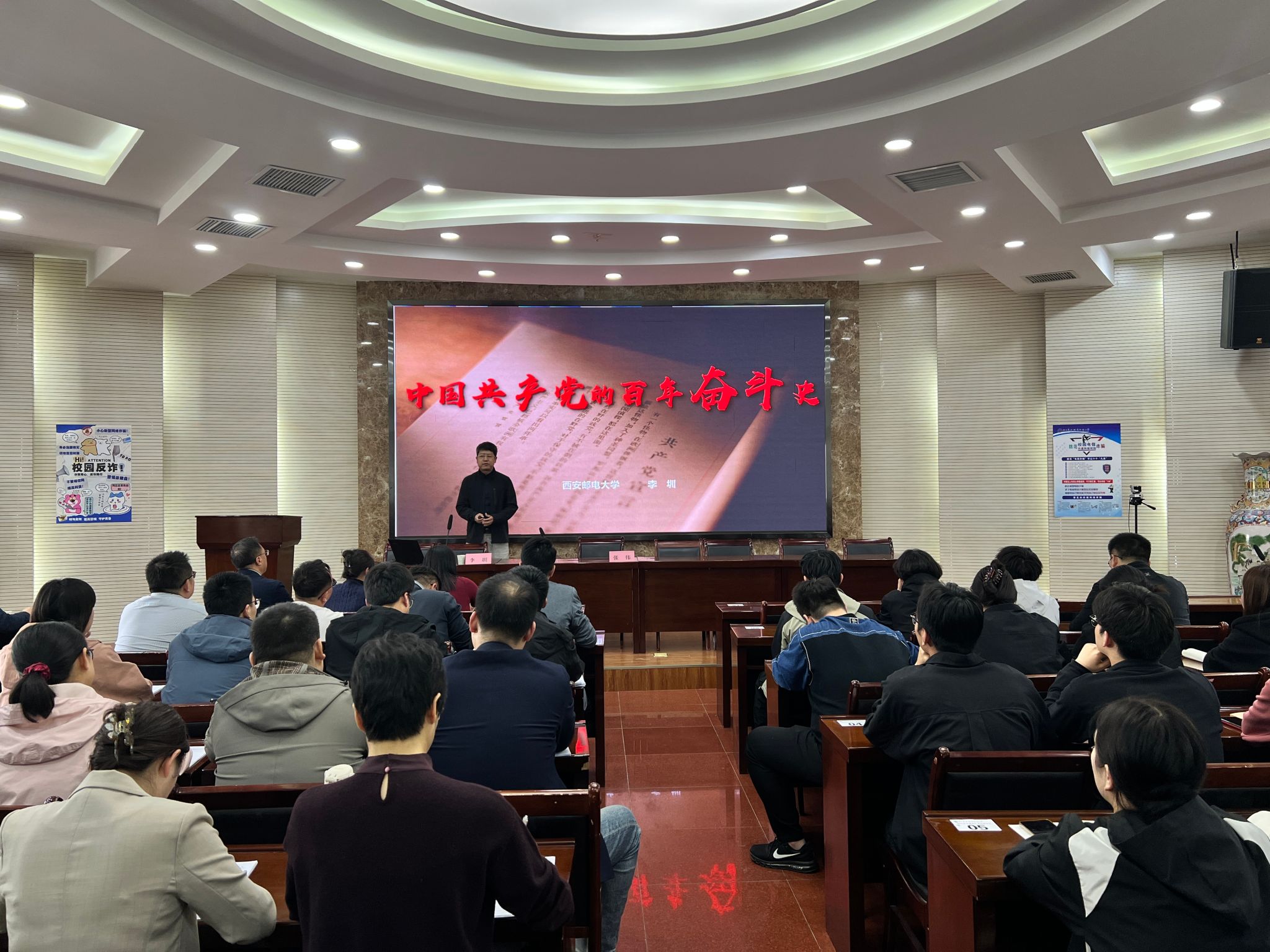 4月9日下午,学校举行陕西高校思政“金课”巡讲活动专题宣讲会,邀请陕西高校思政“金课”讲师团成员、西安邮电大学马克思主义学院李圳教授来校宣讲。校党委组织部、马克思主义学院负责人,中青干部能力提升班学员、马克思主义学院教师、学生党员代表共80余人参加活动。