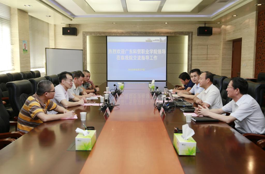 6月27日,广东科贸职业学院党委书记耿静超、党委副书记纪委书记李建辉一行4人来我院访问交流。学院党委书记赵曼、副书记任得元在醒钟楼第一会议室热情接待了客人并举行了座谈。党政办公室、组织宣传部等相关部门负责人参加了座谈会。