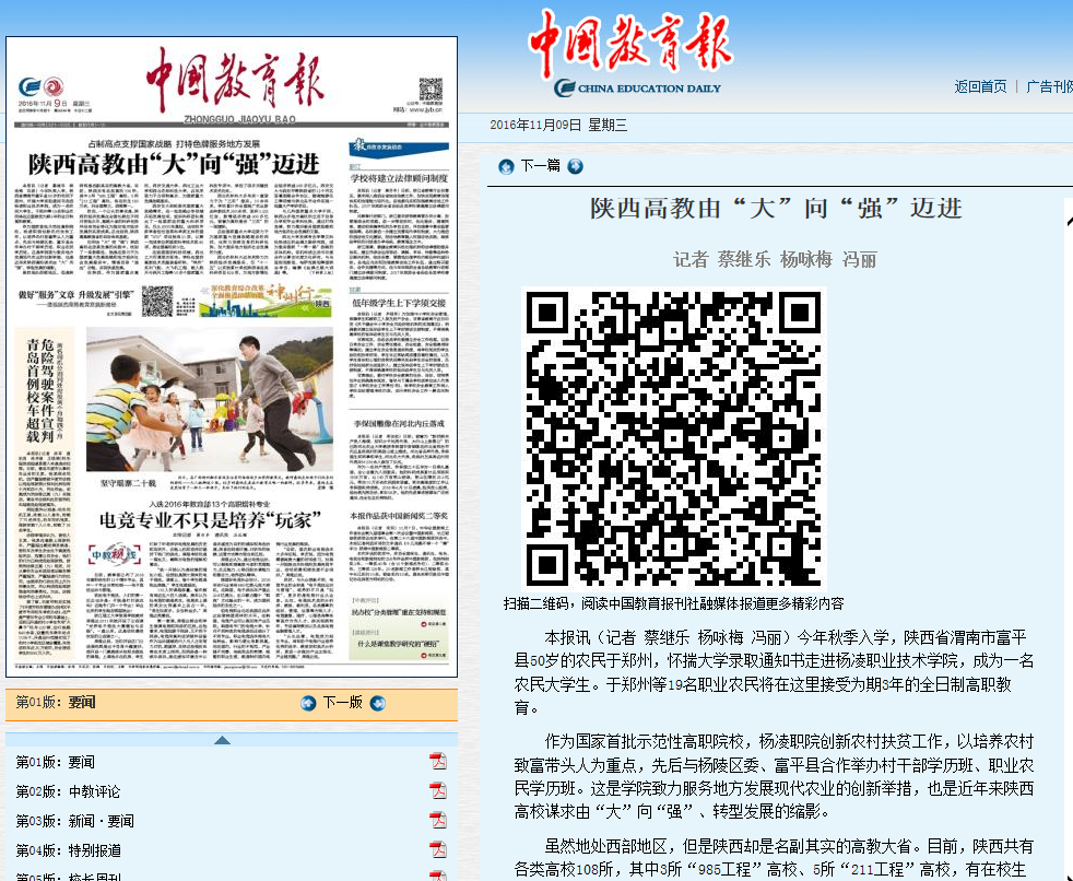 119日,《中国教育报》头版头条以“陕西高教由“大”向“强”迈进”为题报道了我院精准扶贫工作(详情进入)