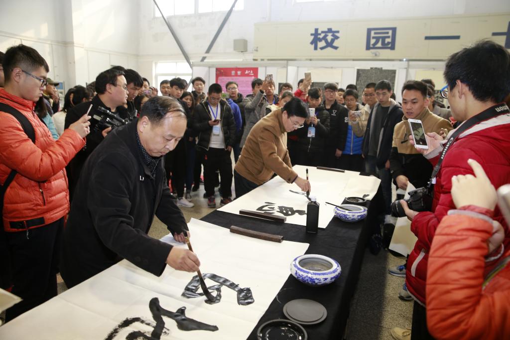 开幕式后,西安碑林书法艺术中心书法家现场为师生书写赠送书法作品100余幅;王冰为我院师生及书法爱好者作了题为《西安碑林名碑书法艺术赏析》专题讲座。
