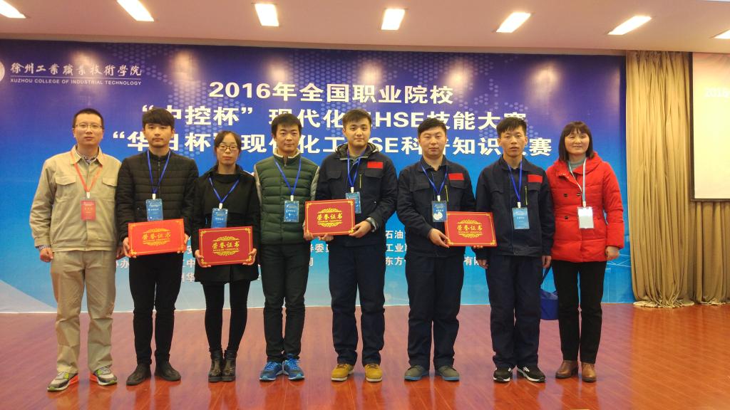 ——我院学生在现代化工HSE技能竞赛中荣获佳绩。近日,由全国石油和化工职业教育教学指导委员会主办的“2016年全国高职院校现代化工HSE科普知识竞赛和现代化工HSE技能竞赛”,在徐州工业职业技术学院举行。我院石油化工技术专业6名同学参加了此次大赛,其中柳程拢、张若华、张鹏三名同学获得现代化工HSE技能竞赛三等奖,李军伟、郭凯航、张莹三名同学获得现代化工HSE科普知识竞赛三等奖。
