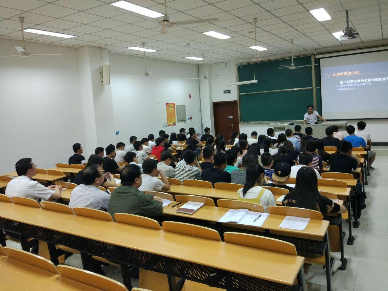在课堂上,张玉明认真听了思想政治理论教学部马克思主义中国化教研室郭雄伟老师为动工分院畜牧兽医15061、15062、15063三个班百余名大二学生讲授的“解决台湾问题,实现祖国完全统一” 章节,并不时认真着记录。课间休息时,张玉明对郭雄伟授课的内容、形式、互动等给予了充分肯定,并进行了点评和指导。