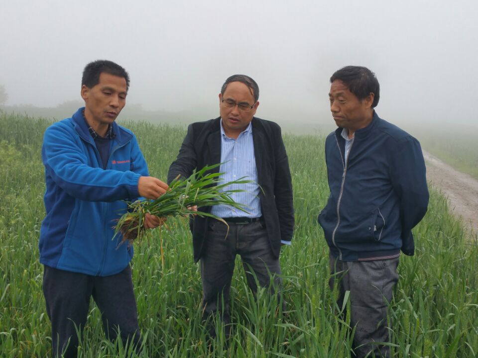 由于今年3月下旬气温较往年偏高,小麦拔节期生长旺盛,生育期较往年提前了10天左右,但4月6日和14日的两次霜冻,正值小麦生长的孕穗期,对我院“双百工程”帮扶点——宝鸡市麟游县的小麦生长产生了严重影响。得知这一情况,4月23日,我院立即派出农学专家周济铭前往麟游县,查看小麦霜冻情况。