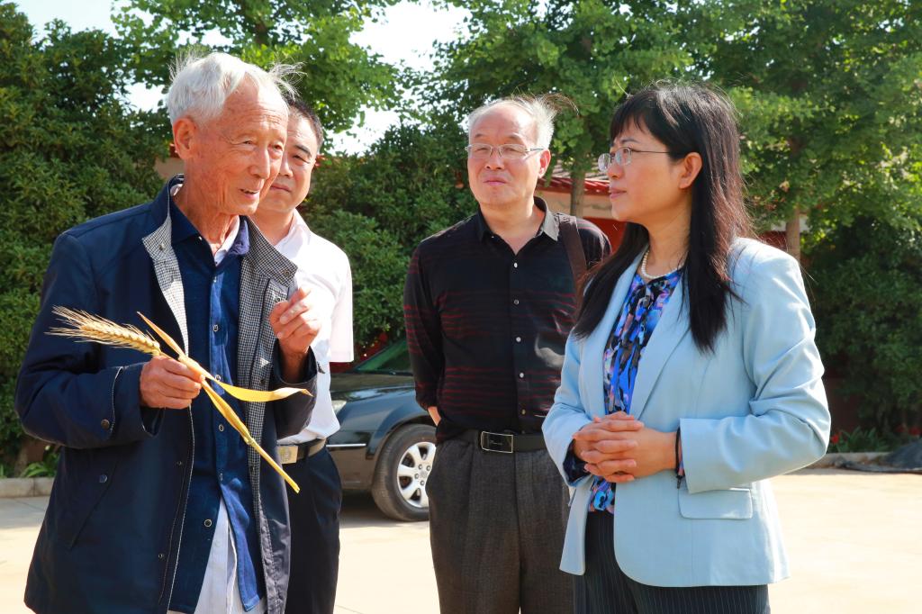 得知武农611特性稳定、品质优良,武农981在山东、河南试验中亩产量可达1400斤左右,陈宁首先对赵瑜取得的科研佳绩表示祝贺。她指出,“赵瑜精神”既反映了学院的办学宗旨、历史传承,也是凝聚全院师生力量、促进学院跨越发展的思想基础,各相关部门要加快组建赵瑜小麦研究所的专家团队,稳步发展育种事业,巩固提升研究水平,促进研究成果推广:在赵瑜小麦研究所建立新功能型党支部和党性教育基地,加大对赵瑜先进事迹的挖掘和宣传力度;进一步弘扬和传承“赵瑜精神”,以“不忘初心、牢记使命”主题教育为契机,引导广大党员干部和青年学子不忘初心、潜心钻研,肩负起时代赋予的重任。